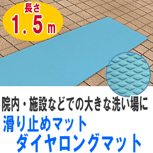 商品名:ダイヤロングマット 長さ1.5m ・施設や院内などの大きな洗い場の滑り止めマット ・水に濡れやすい廊下や脱衣所に ・プールの周りや浴槽の周りに ・両面ダイヤカットになっています。